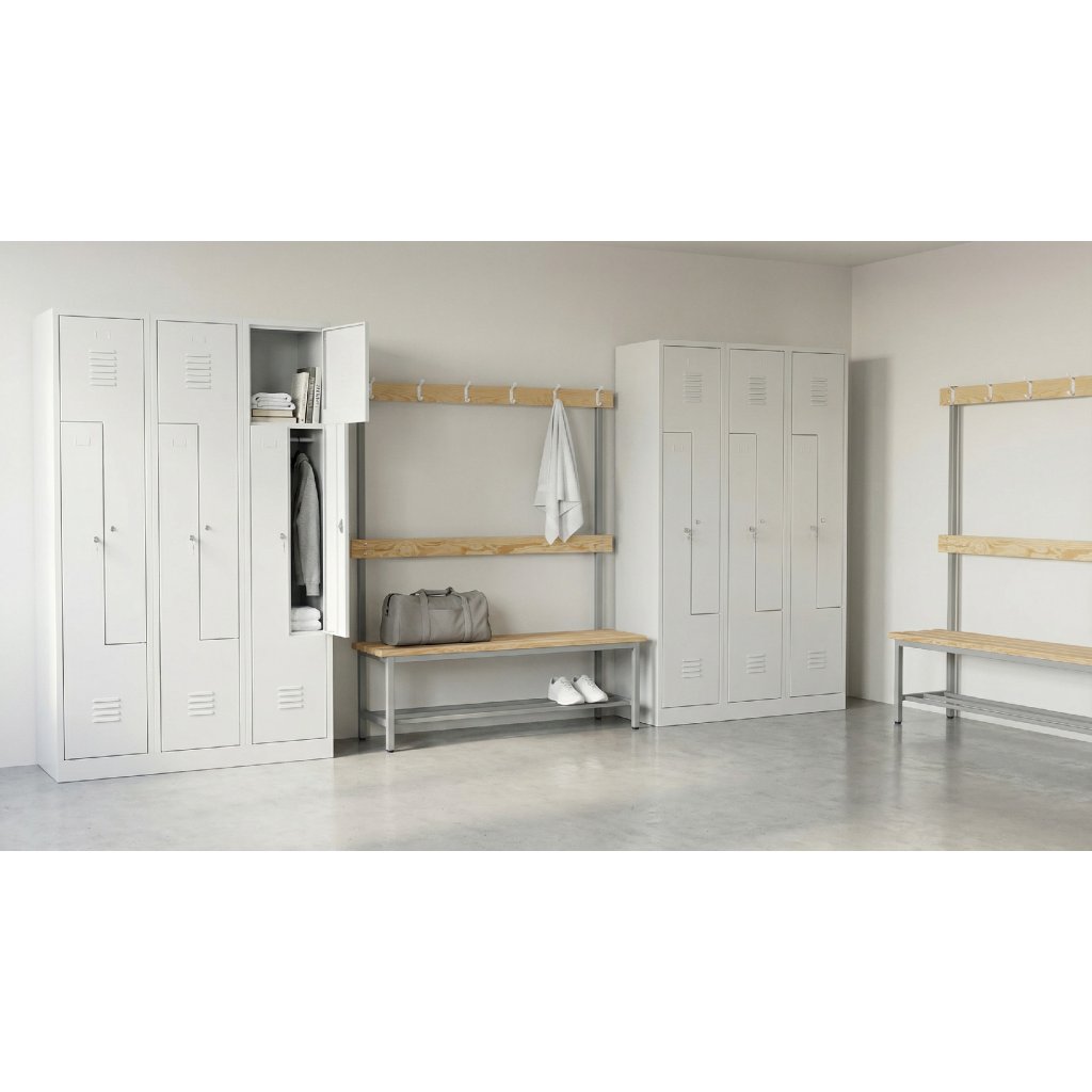 Robustná lavička s pevnou, celozváranou kovovou konštrukciou je ideálnym riešením do šatní, spoločenských priestorov či verejných zariadení. Sedacia časť je vyrobená z kvalitného smrekového masívu s lakovanou povrchovou úpravou pre dlhšiu životnosť a jednoduchú údržbu.