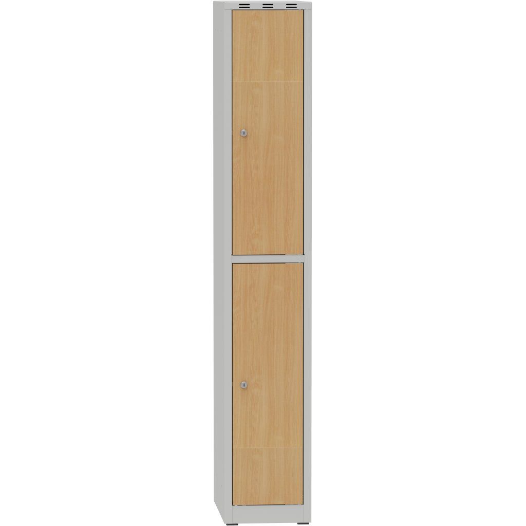 Kovová šatníková skrinka BOX KA1/2 LAMINO, 2-dverová, s delenými dverami, 1800x300x500 mm, šatňová skriňa