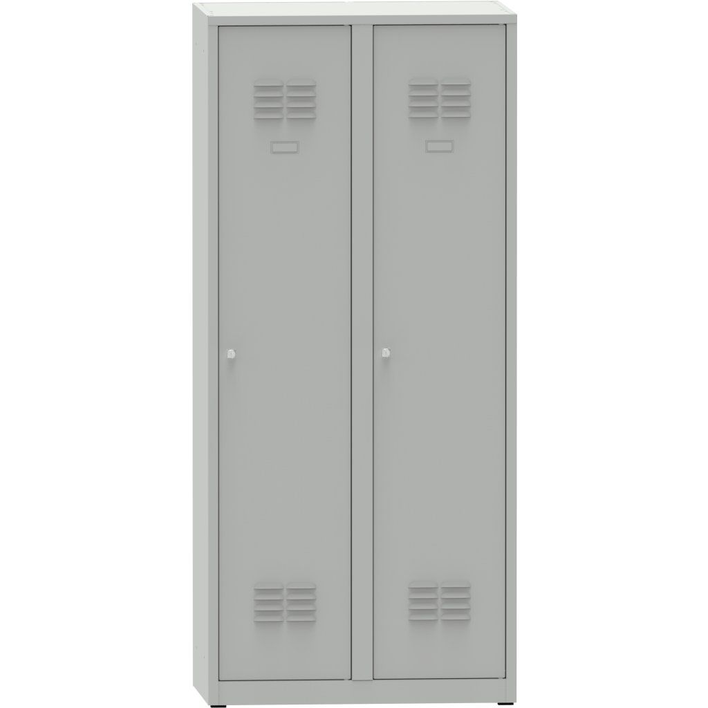 Kovová šatníková skrinka BOX KA2 CB, 2-dverová s deliacou prepážkou, 1800x800x500 mm, sivá RAL 7035 – skriňa do šatne