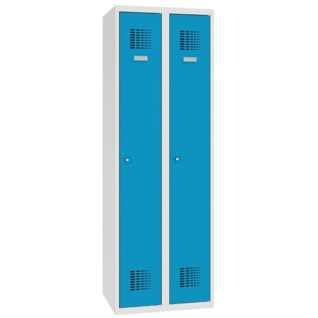 Kovová šatňová skriňa BOX MW 2 – 2-dverová s modrými dverami, 1800x600x500 mm